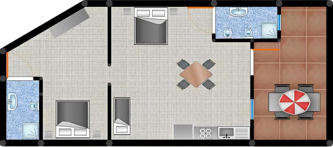 Casa con 2 Camere da Letto. This air-conditioned holiday home consists of 1 living room, 2 separate bedrooms and 2 bathrooms with a shower. The holiday homes kitchenette, which has a stovetop and a refrigerator, is available for cooking and storing food. This holiday home features a coffee machine, a seating area, a flat-screen TV with satellite channels and a terrace. The unit offers 3 beds.